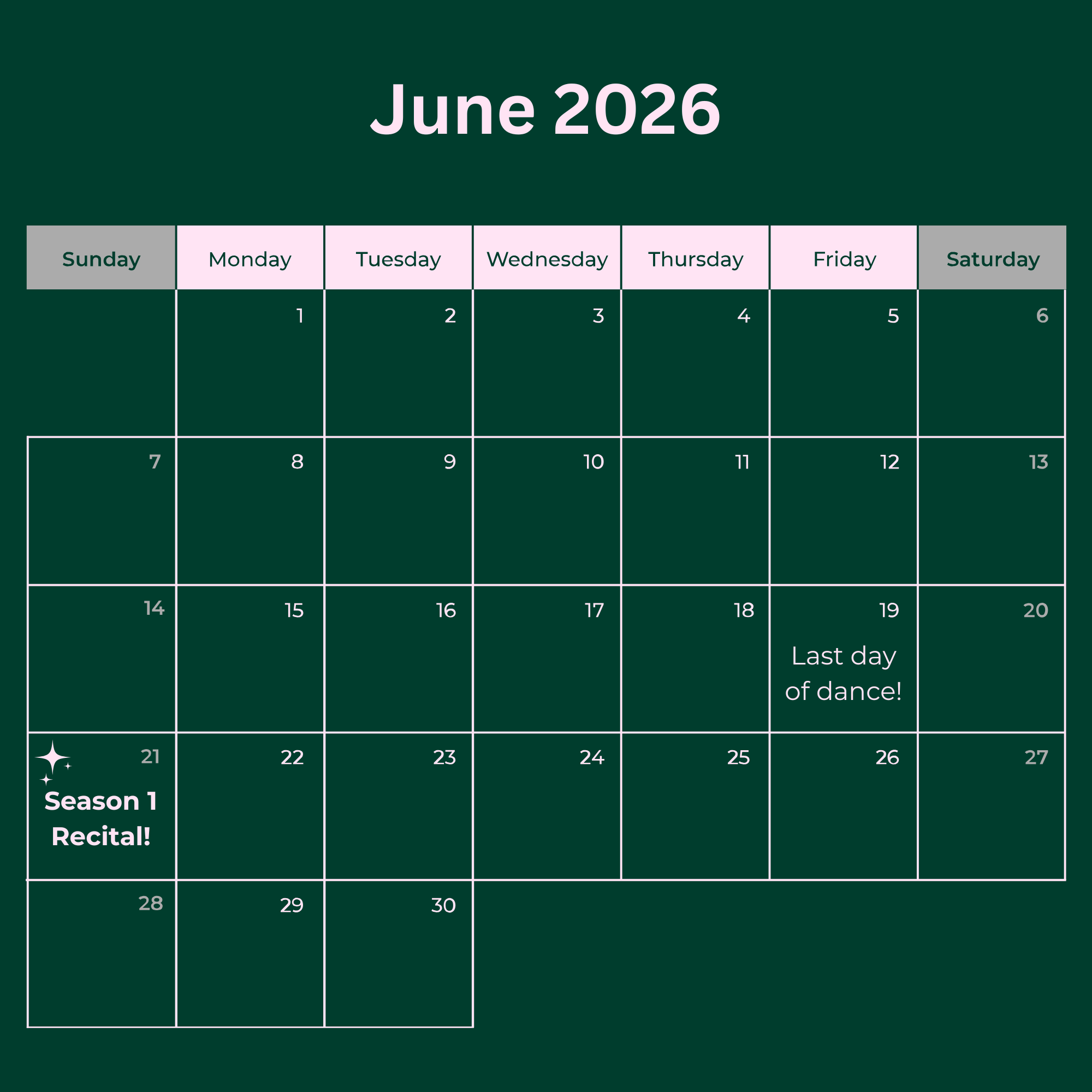 Recital date is subject to change, parents will be informed via email when date is confirmed. Thank you for your understanding!